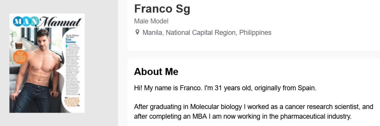 Before that, Francisco Manuel Sanchez de Oria presented himself as a sex couch with a focus on masturbation, and as the CEO of a Singapore-based herbals company, named herbolab.